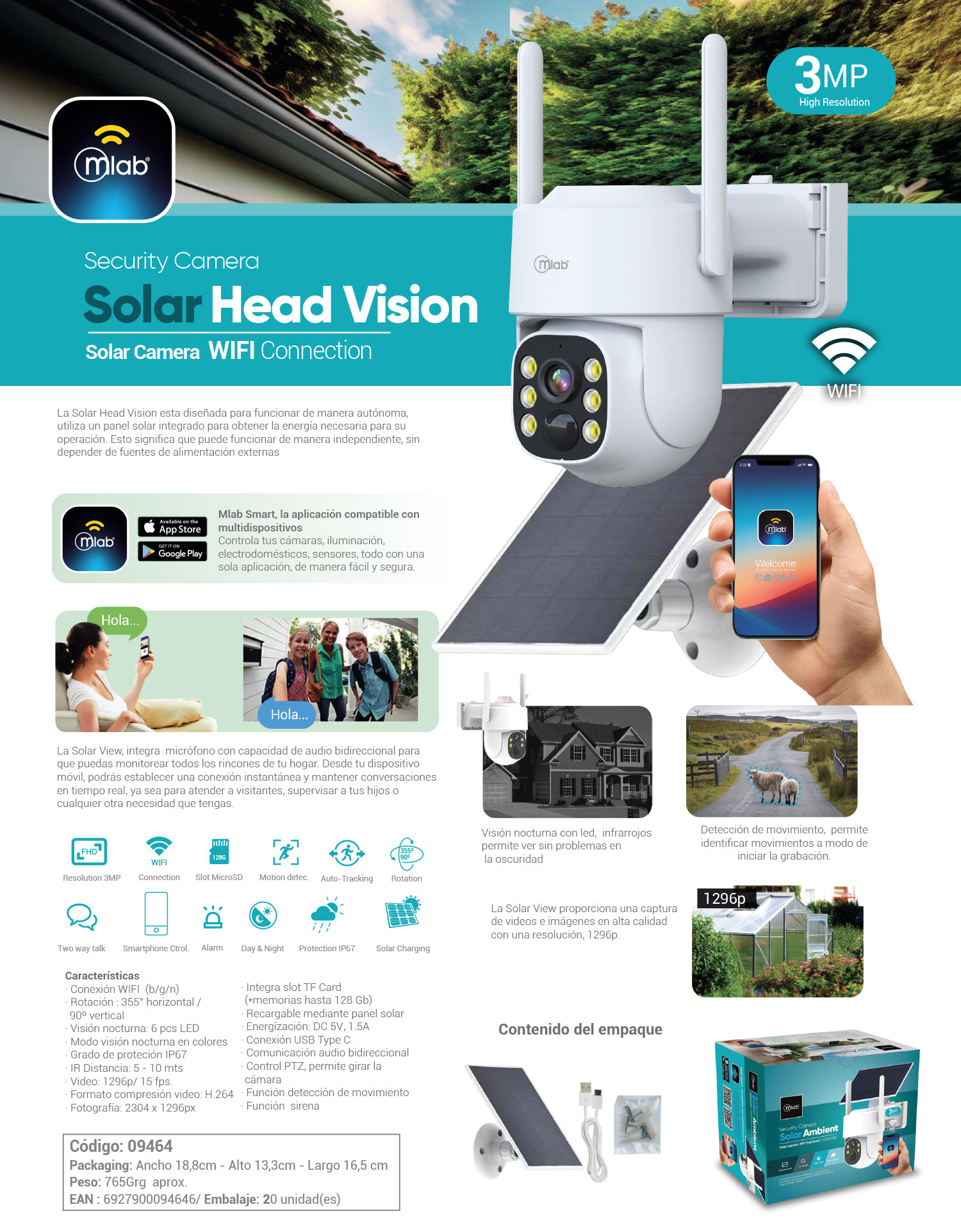 La Solar Head Vision esta diseñada para funcionar de manera autónoma, utiliza un panel solar integrado para obtener la energía necesaria para su operación. Esto significa que puede funcionar de manera independiente, sin depender de fuentes de alimentación externas.