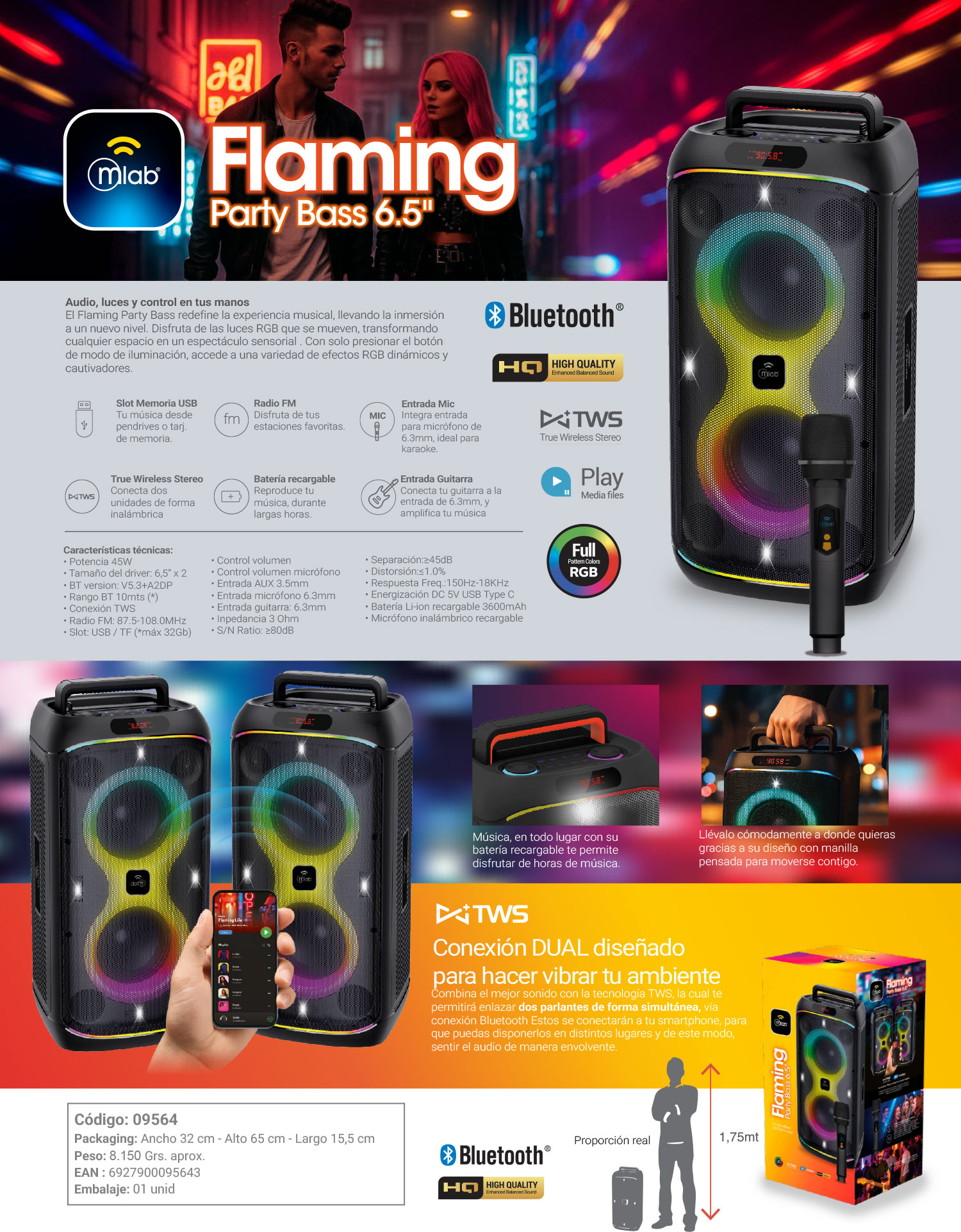 Audio, luces y control en tus manos El Flaming Party Bass redefine la experiencia musical, llevando la inmersión a un nuevo nivel. Disfruta de las luces RGB que se mueven, transformando cualquier espacio en un espectáculo sensorial . Con solo presionar el botón de modo de iluminación, accede a una variedad de efectos RGB dinámicos y cautivadores.