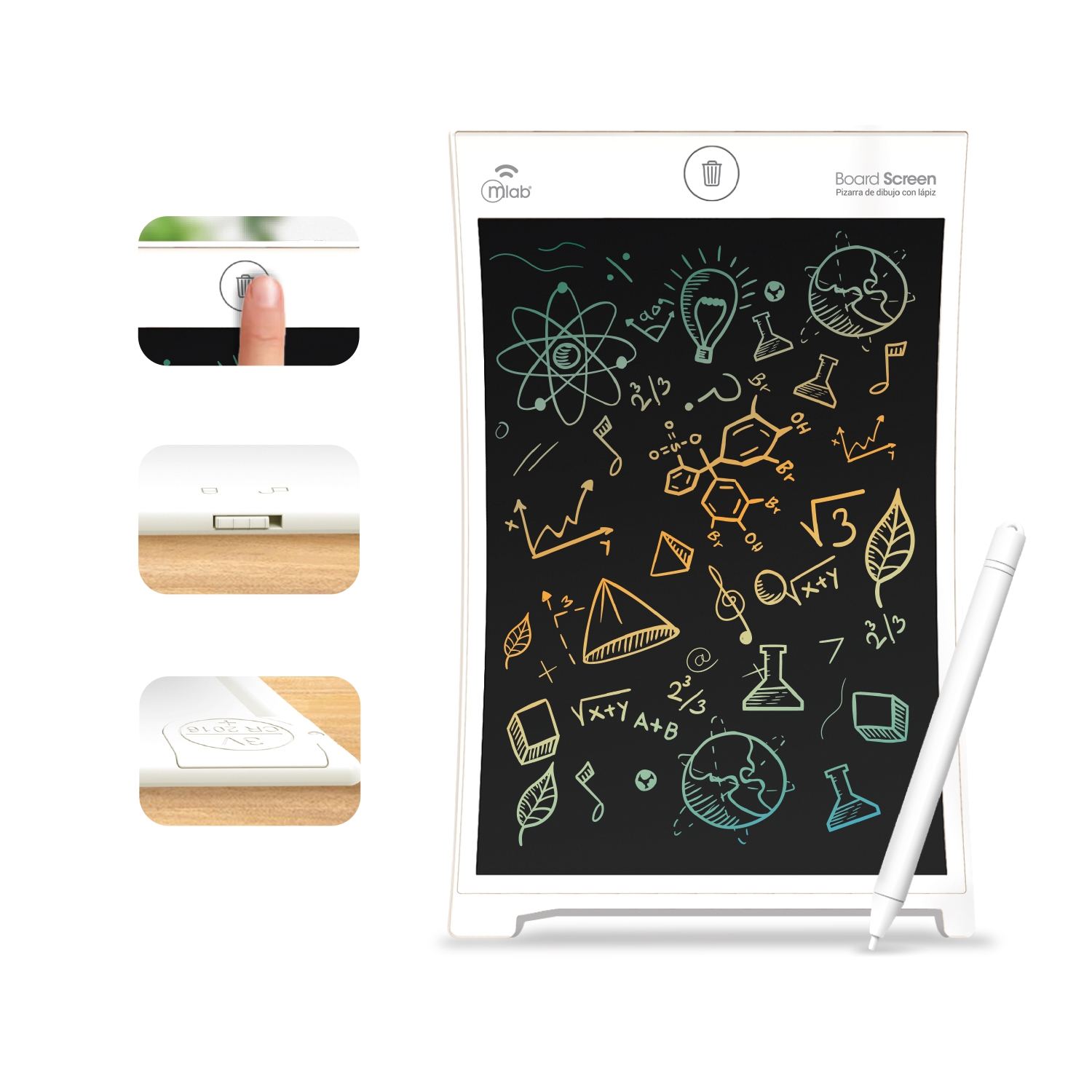 Más que una pizarra para dibujar. Esta colorida pizarra LCD es ideal para el hogar u oficina: perfecta para tomar apuntes, dejar recados, escribir mensajes o simplemente dar rienda suelta a la creatividad. Con trazos de distintos grosores y borrado instantáneo, es práctica, versátil y siempre lista para usarse.