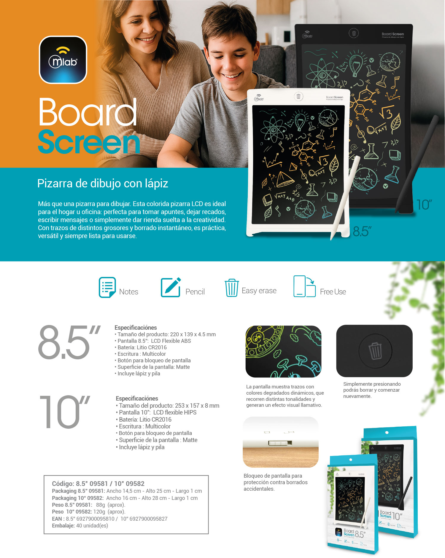 Más que una pizarra para dibujar. Esta colorida pizarra LCD es ideal para el hogar u oficina: perfecta para tomar apuntes, dejar recados, escribir mensajes o simplemente dar rienda suelta a la creatividad. Con trazos de distintos grosores y borrado instantáneo, es práctica, versátil y siempre lista para usarse.
