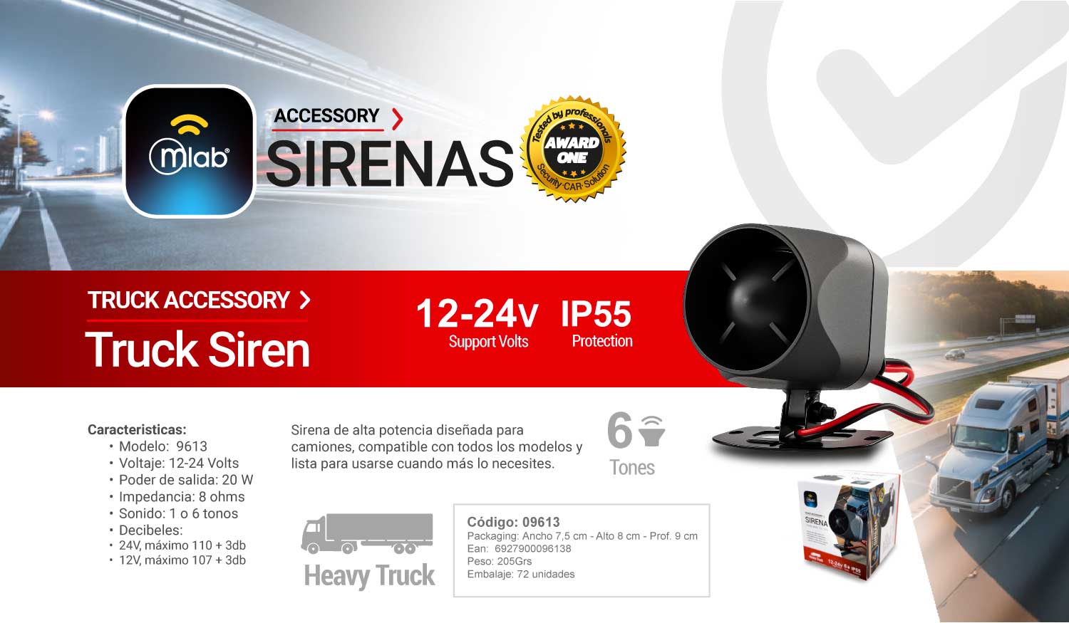 Sirena de alta potencia diseñada para camiones, compatible con todos los modelos y lista para usarse cuando más lo necesites.