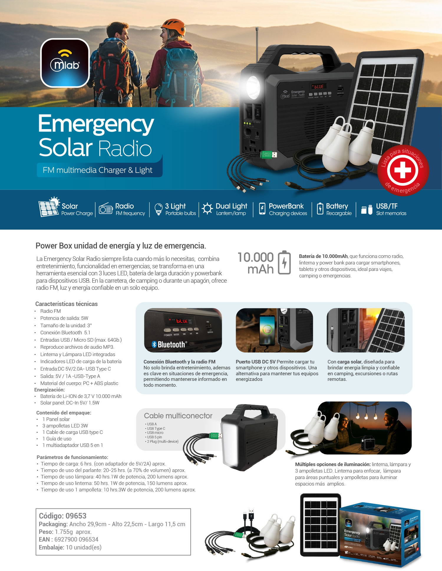 La Emergency Solar Radio siempre lista cuando más lo necesitas, combina entretenimiento, funcionalidad en emergencias, se transforma en una herramienta esencial con 3 luces LED, batería de larga duración y powerbank para dispositivos USB. En la carretera, de camping o durante un apagón, ofrece radio FM, luz y energía confiable en un solo equipo.